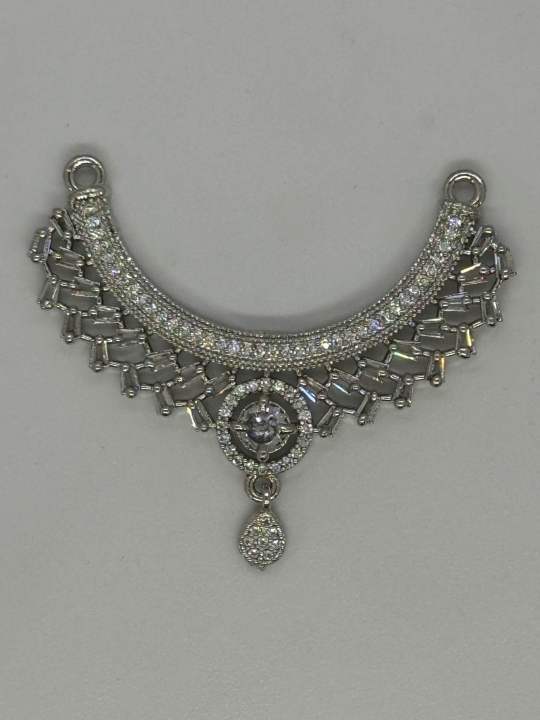Crescent shaped necklace pendant with american diamond