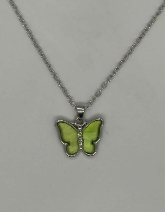 Fashionable stone-studded green butterfly pendant necklace Code: 100000000047