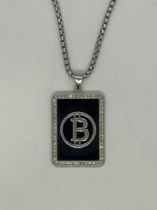 Stainless steel B shaped pendant necklace featuring a black enamel background